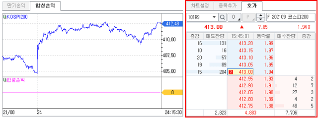 선물최근월물의 비중은 KOSPI200 지수의 비중에 의해 자동(100 - KOSPI200지수 비중)으로 계산됩니다.