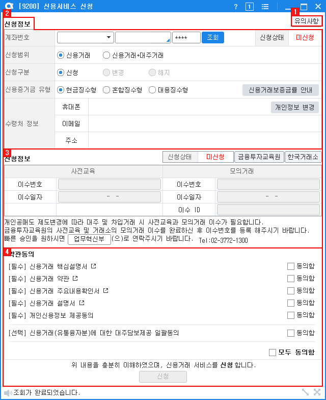 사전교육과 모의거래 신청정보를 조회할 수 있습니다.